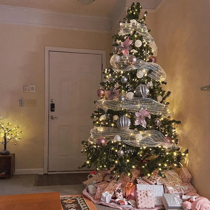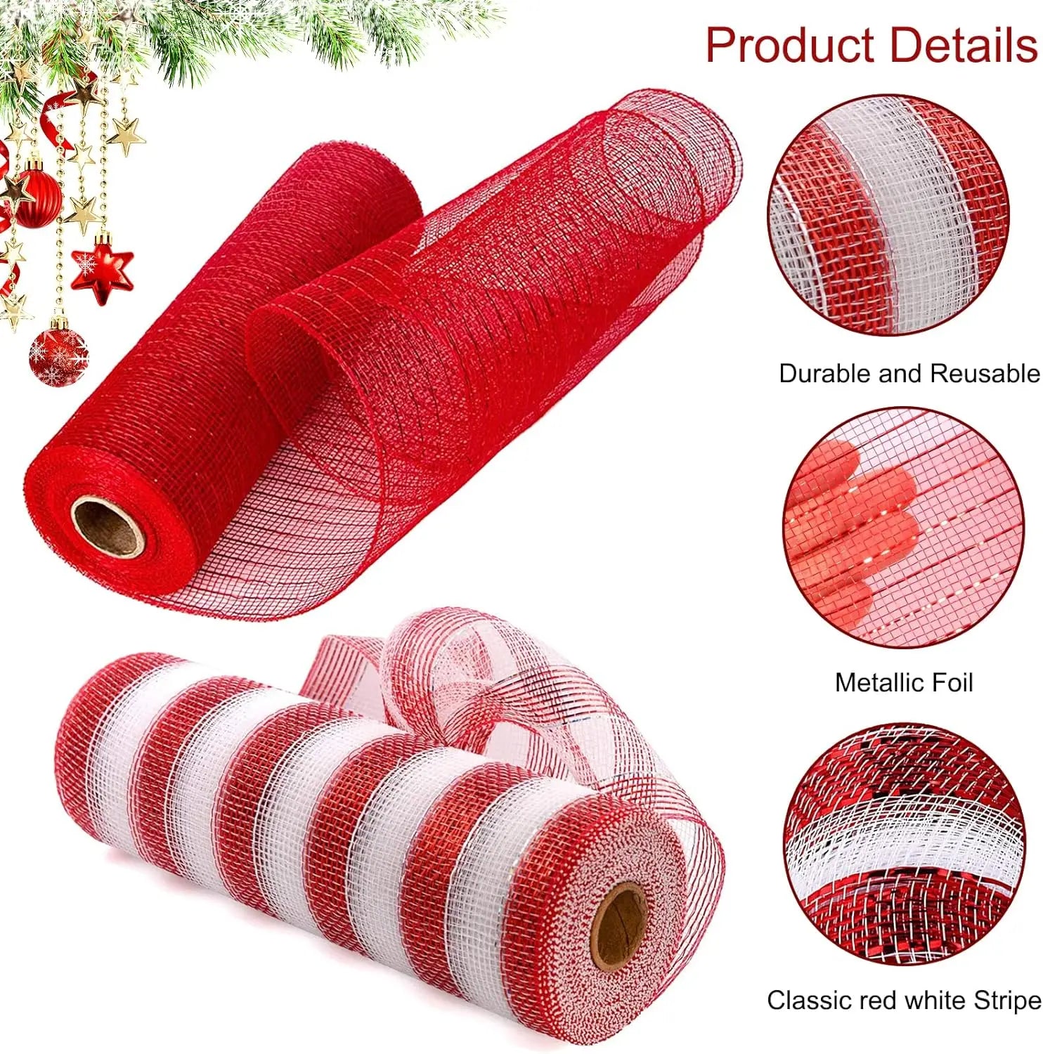 10Yard Christmas Red White Metallic Mesh Ribbon