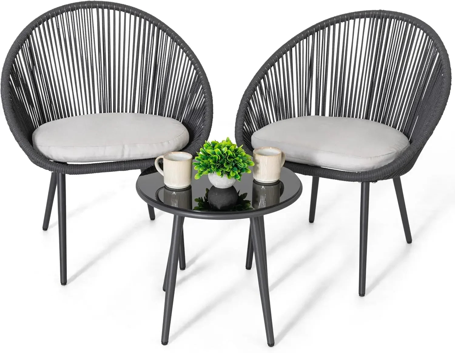 3 Piece Outdoor Bistro Set, Woven Rope Conversation Patio Set