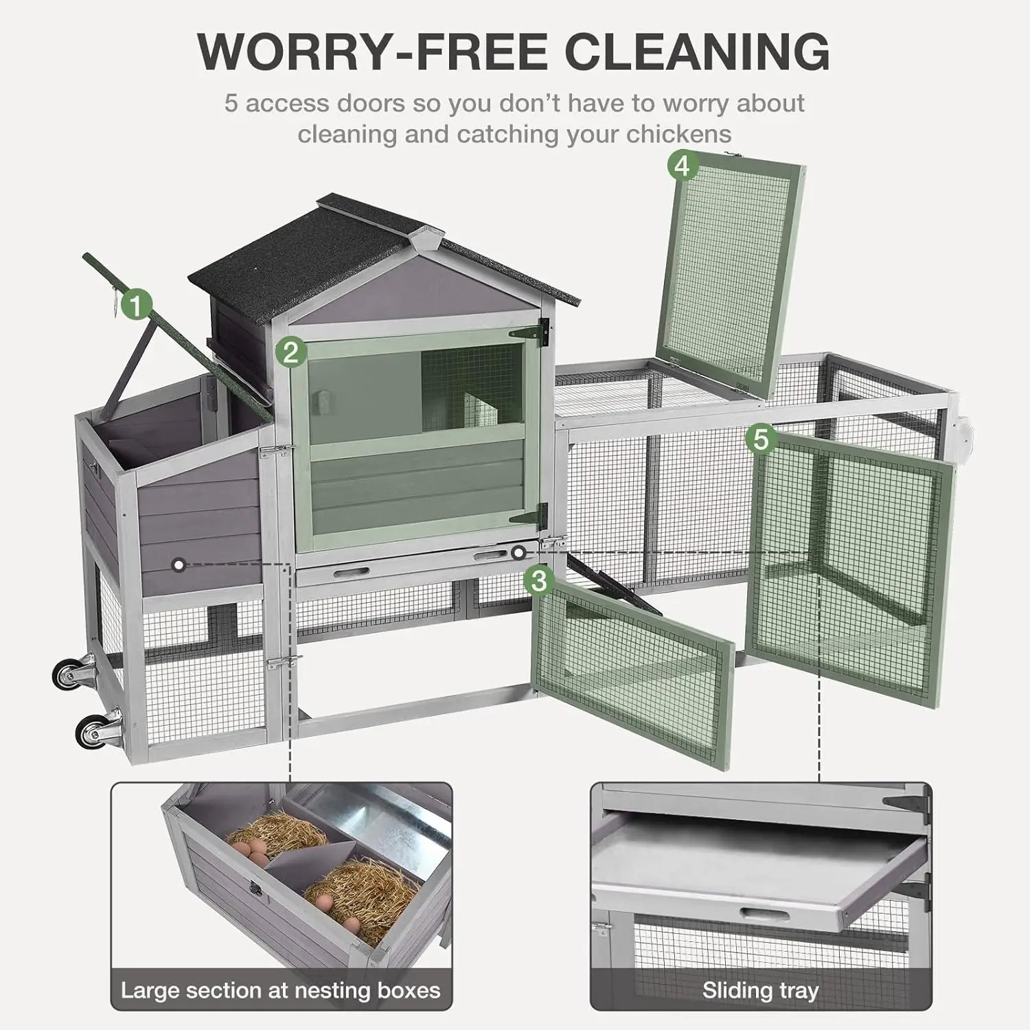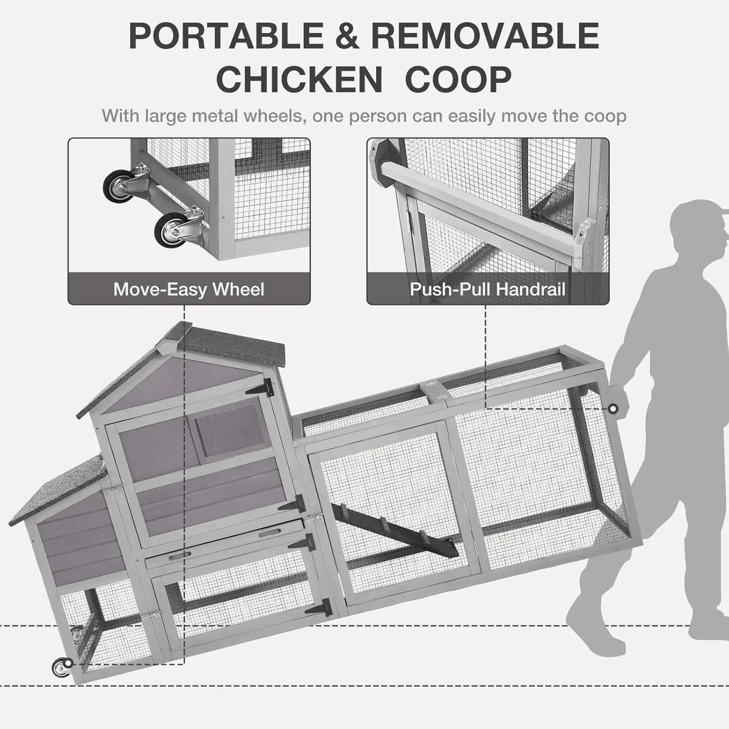 Chicken Coop for Outdoor with Wheels, Nesting Box
