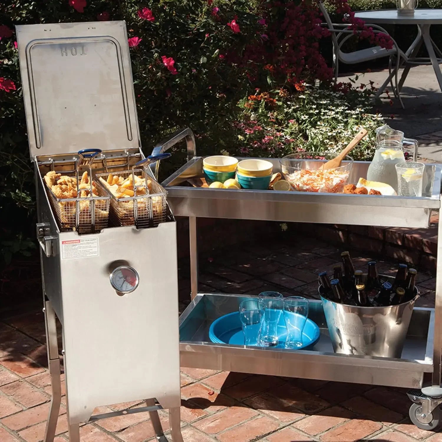 Classic 700-701 4-gal Stainless Fryer with 2 Stainless Mesh Baskets Fry Thermometer Drain Valve High Pressure Regulator