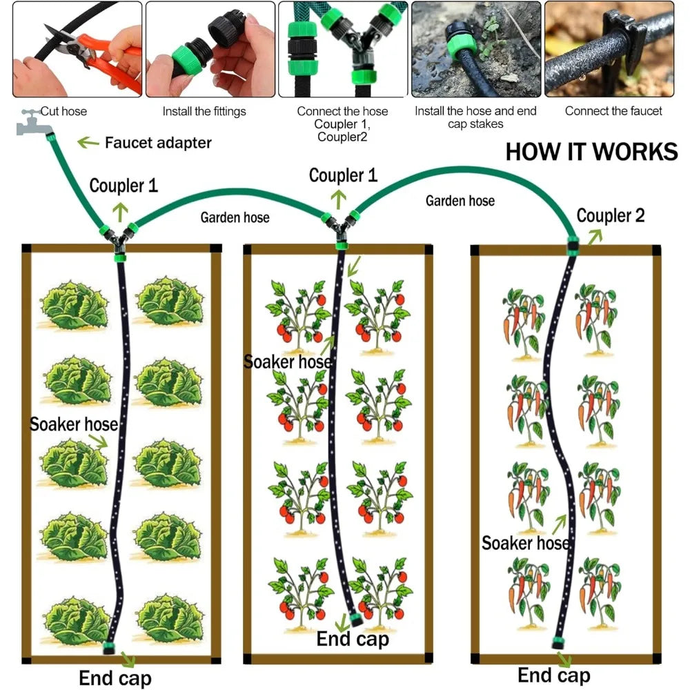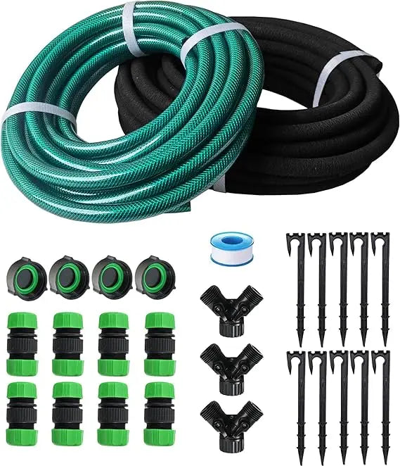 Flexible 75-Foot Soaker Hose System with 50-Foot Garden Hose