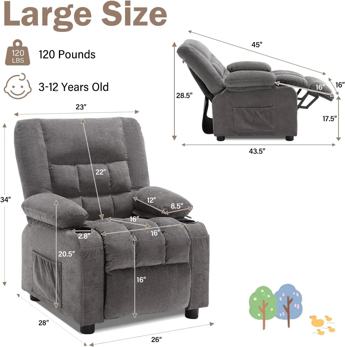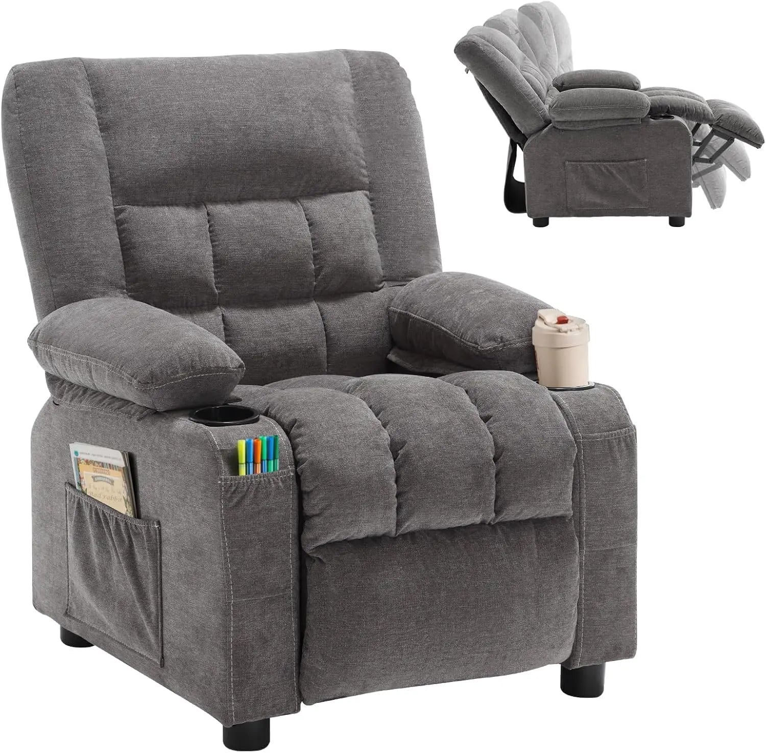 Kids Recliner Chair with Cup Holders, Adjustable Footrest & Headrest, Deep Grey