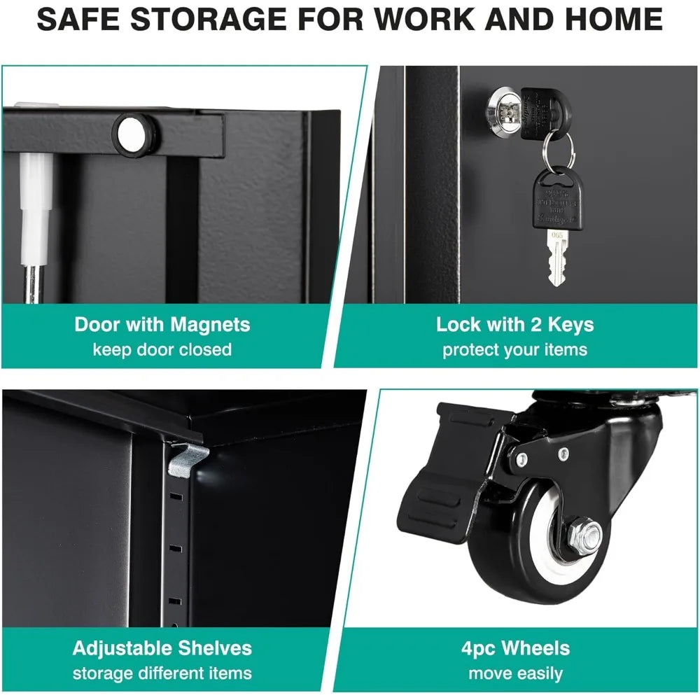 Metal Storage Cabinet with Wheels and Drawers and Adjustable Shelves 3"