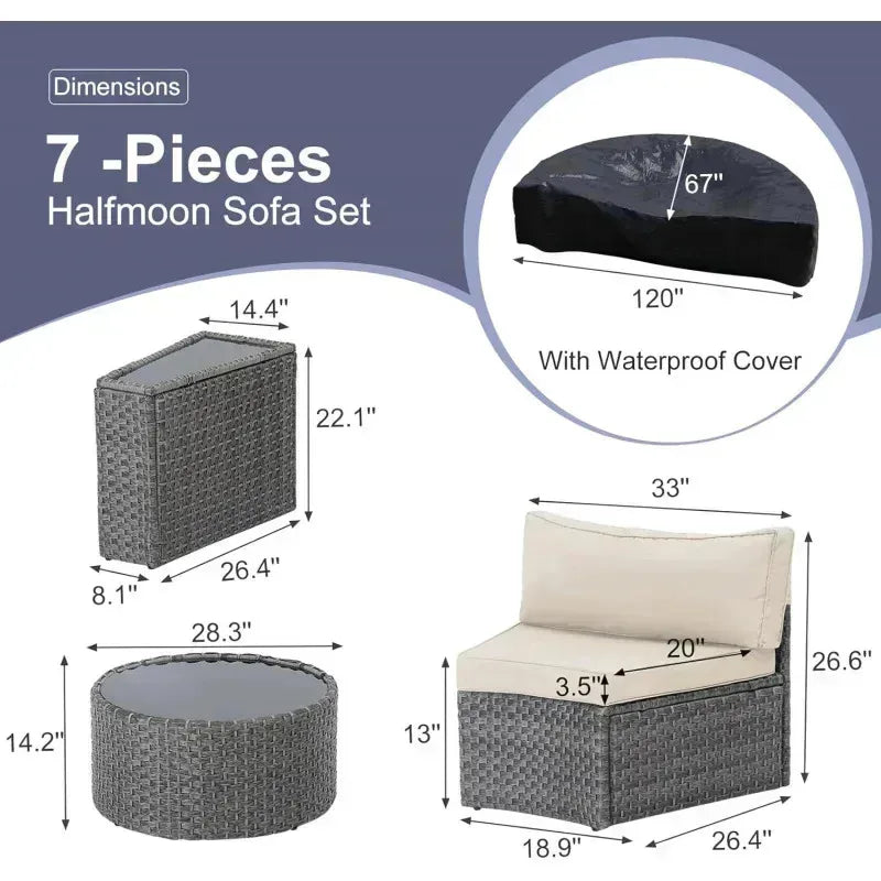 outdoor patio half-moon furniture. Grey rattan