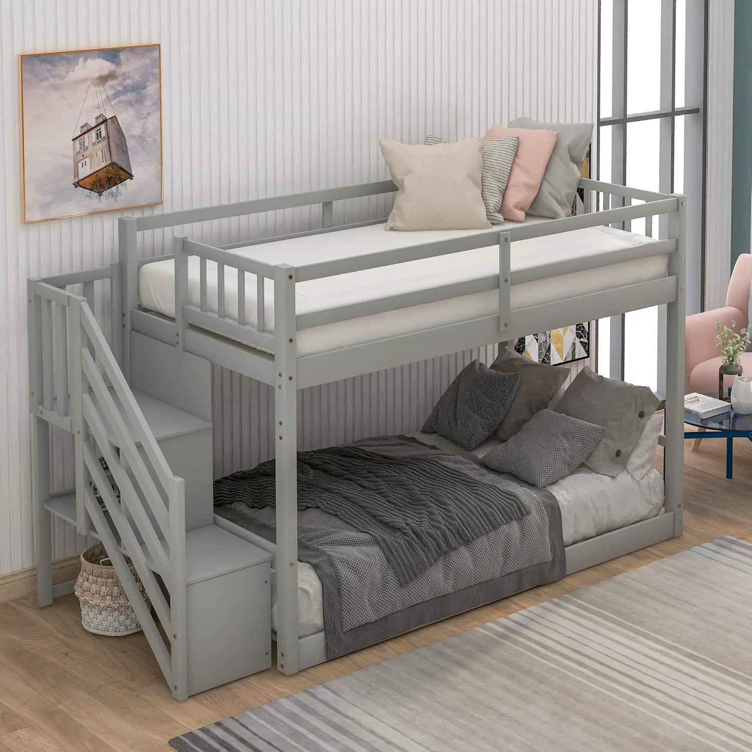 Twin Over Twin Bunk Bed with Stairs,Wood