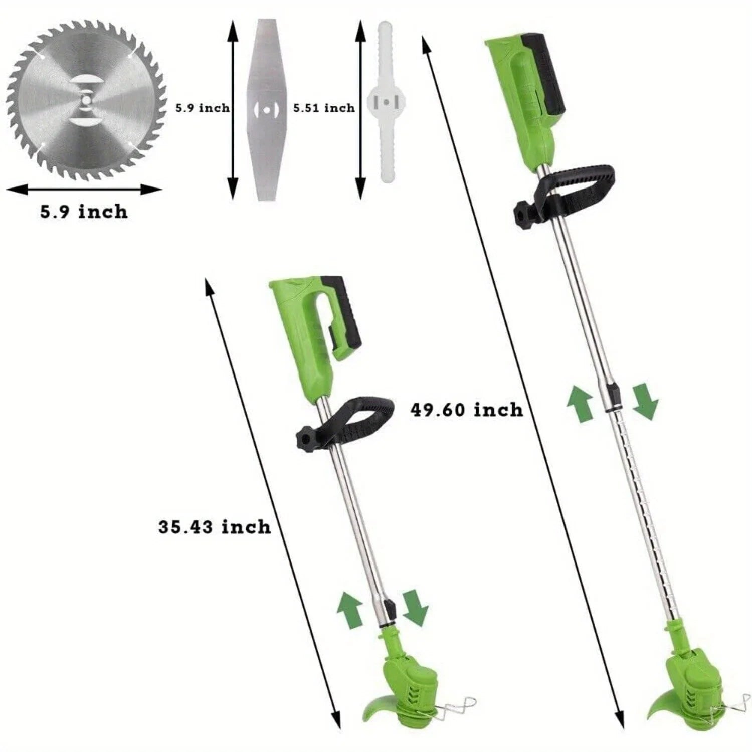 Weed Wacker Battery Operated, 600W Cordless Grass Trimmer 51" Height Adjustable with 8 Blades and 2 * 24V Batteries